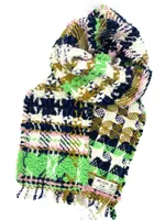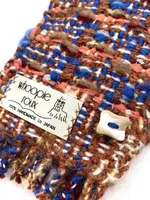 個性が光る可愛いツイードアイテムは、アパレル工場での生産後のうつくしい残り糸を使用して、手織りで製作しています。中には、高級アパレルで使用されたものも。すべての作品が、様々な色合い・太さ・質感の糸が織りなす表情をお楽しみいただける一点物。 絵を描くようにマルチパターンを手織りでデザインした " b l a n k e t " の端には、トランプの図柄のハートとスペードをあしらっており、お部屋にあるだけで気分が上がりそうです。肩から掛けてショールとしても使えます。