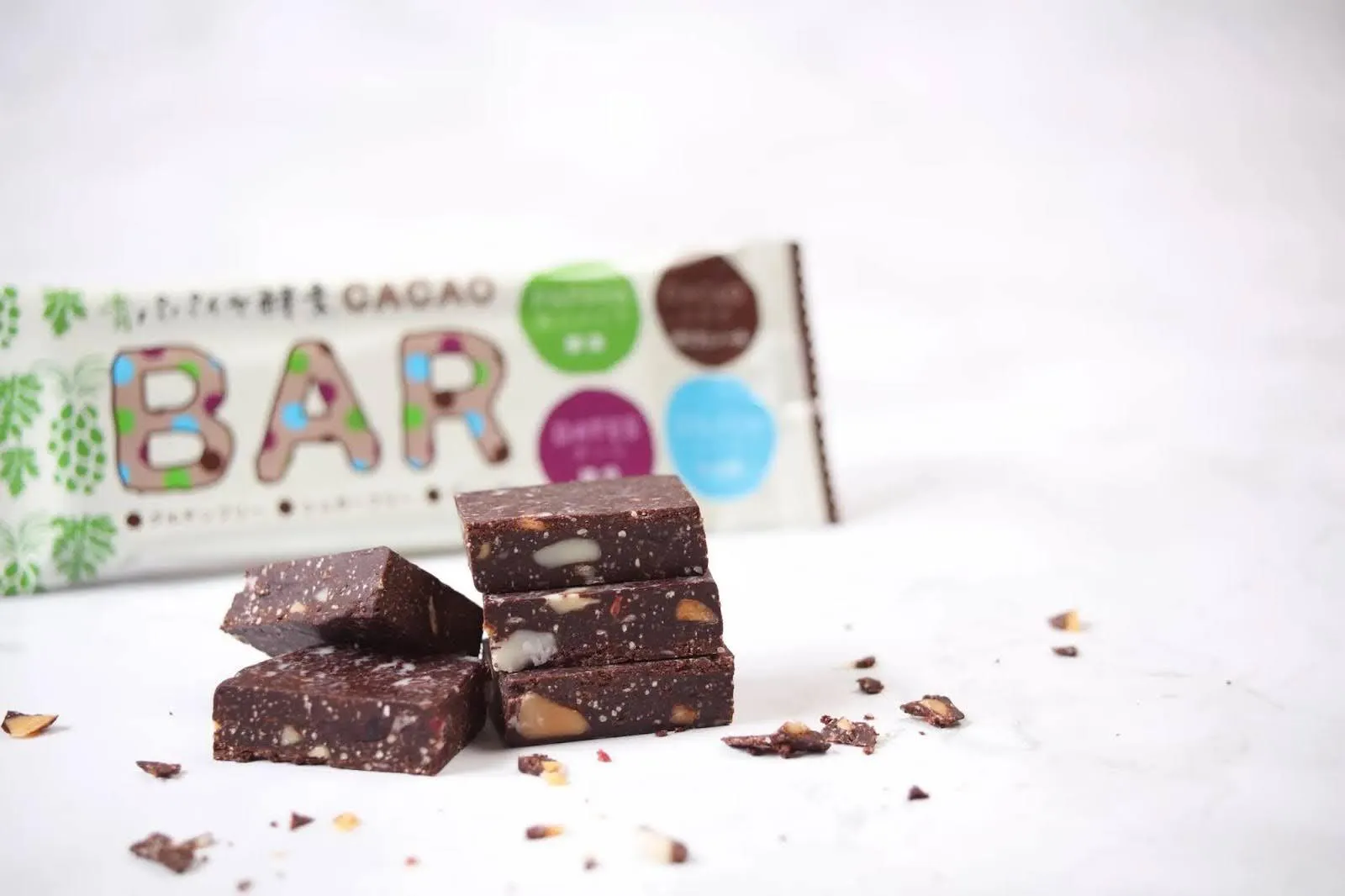 「青パパイヤ酵素入りカカオバー」は、健康と美容に欠かせないビタミンやミネラルが豊富に含まれる青パパイヤを、実も皮も種も丸ごと発酵させたギルトフリースイーツです。体に嬉しい成分がたっぷりで、鉄分や美容のミネラルと呼ばれるシリカなど普段補いづらい栄養素をブレンドしています。消化吸収のサポートが期待でき、美容や健康を意識される方にもぴったりです。