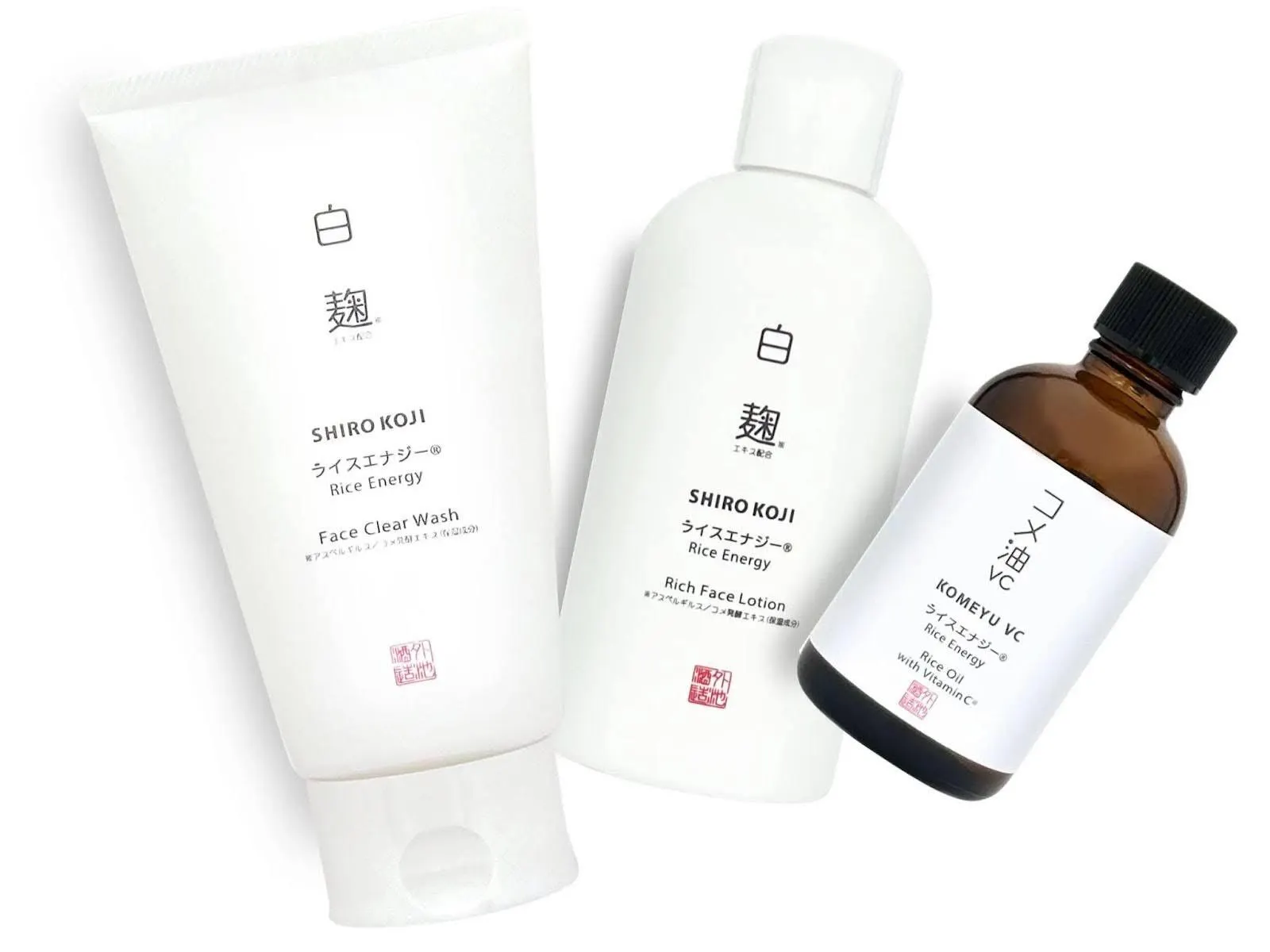 “ライスエナジー 白麹化粧水”は白麹エキスと有機米生まれのコメ発酵液をはじめ計9種のお米の美容成分を惜しみなく配合。ベース水に酒造りの仕込み水を使用し角質へ素早く浸透し気になる毛穴の目立ちやくすみ肌に潤いを与えキメ細かい素肌に導きます。
