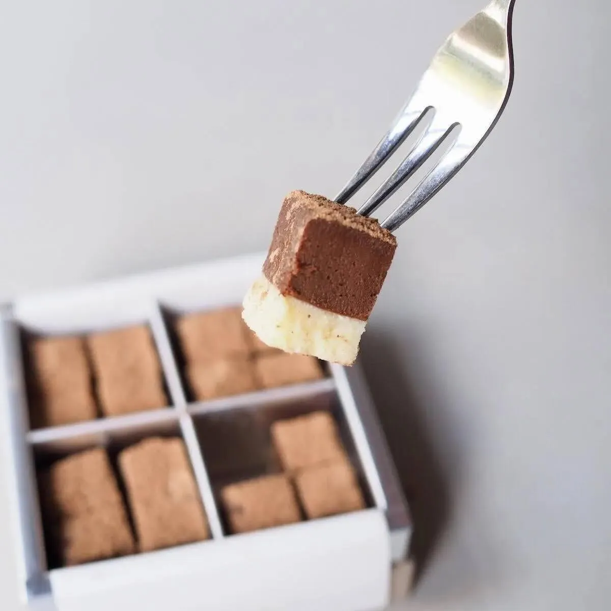 ダークチョコレート部分は、しっかりとしたカカオの香りが漂い、ミルキーで口どけの良い仕上がりとなっています。