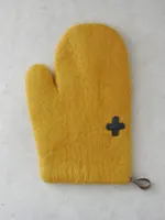 耐熱性の高いウール100%の丈夫なキッチンミトンは、オーブンやアウトドア用にも使えます。飽きの来ない、どこか心をほっとさせてくれる自然が作った自然な黄色と、本革の掛紐がアクセントになっています。