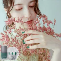 透明感のあるカラーラインアップは、水溶性のマニキュアでは難しいといわれるシアー系のカラー。主成分が水なので、シンナー臭がありません。無臭、速乾、お湯でピールオフ。マニキュアにありがちな人工的な匂いがなく、カラダに優しく、安心安全なマニキュアです。ブラシのサイズはSとMの2サイズが選べます。