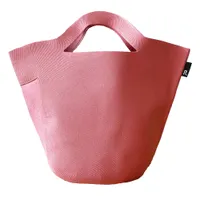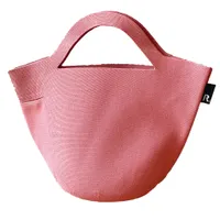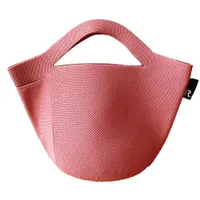 側面はカンガルーのおなかのポケットのようなルーポケット付き。スマホなどを収納するのに便利で、ポケット部分は本体と一体で編まれていて、縫い目がないつくりになっています。ニットなのにしっかりと自立するので、バッグとしてはもちろん、インテリアにも◎。ざっくりとモノを入れて、バスケットの様に使用ができます。