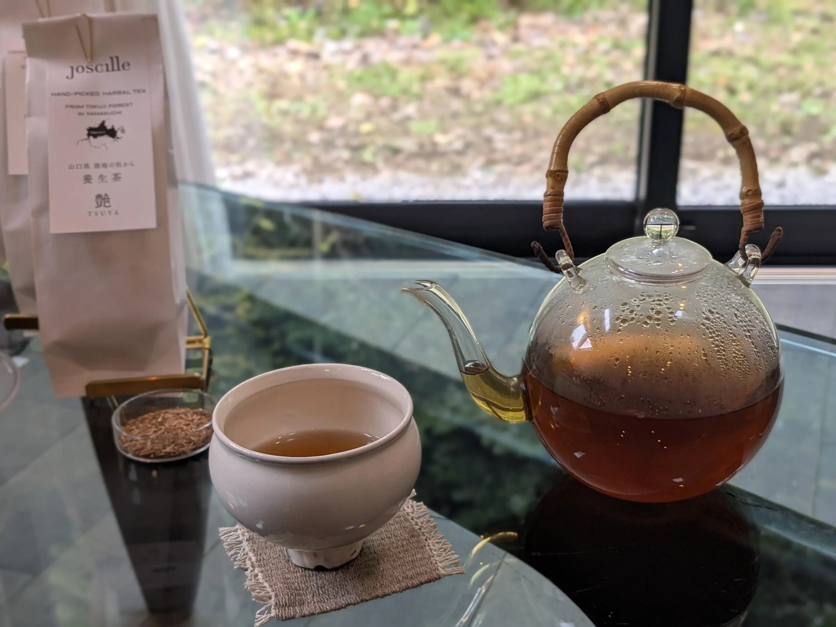 庭の自然を眺めながらいただく”神秘の森”の希少な養生茶