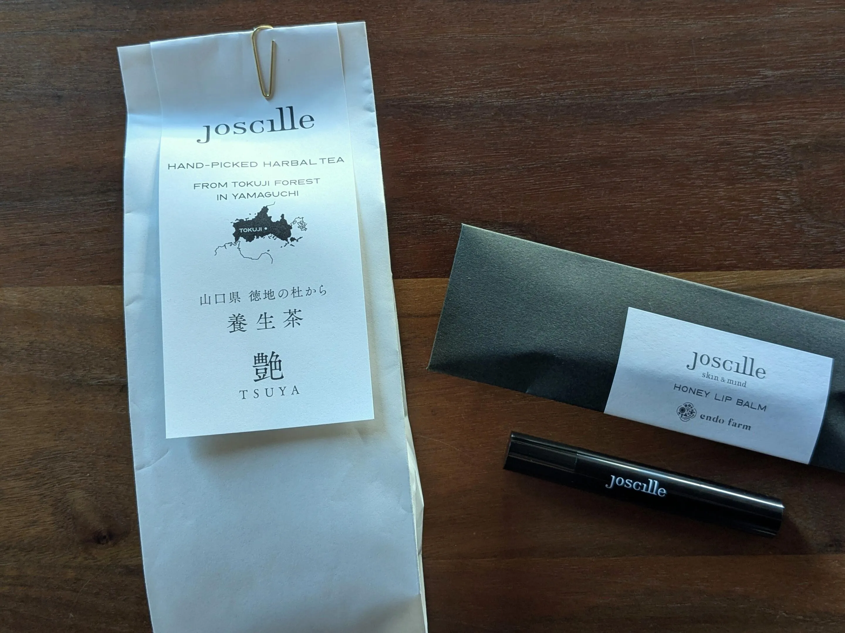 今回は、いただいたお茶「艶」とこれからの季節におすすめという「リップバーム」を選びました。 リップバームは、これまた珍しいひまわりの蜂蜜で作られていて、ミントと柑橘の香りがすっきり。べたべたせずにしっとり唇を潤わせてくれるので、寝る前のケアに使いたいと思います。