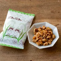 グッズスタッフおすすめの『いがっこのにんにんクッキー』は、三重県伊賀上野の“忍者”をモチーフにしています。伊賀米「みえのゆめ」の米粉と、北海道産石臼挽き小麦全粒粉を使った生地を、圧搾一番搾り菜種油でカリッと揚げた小さなしゅりけん形風の揚げクッキーです。