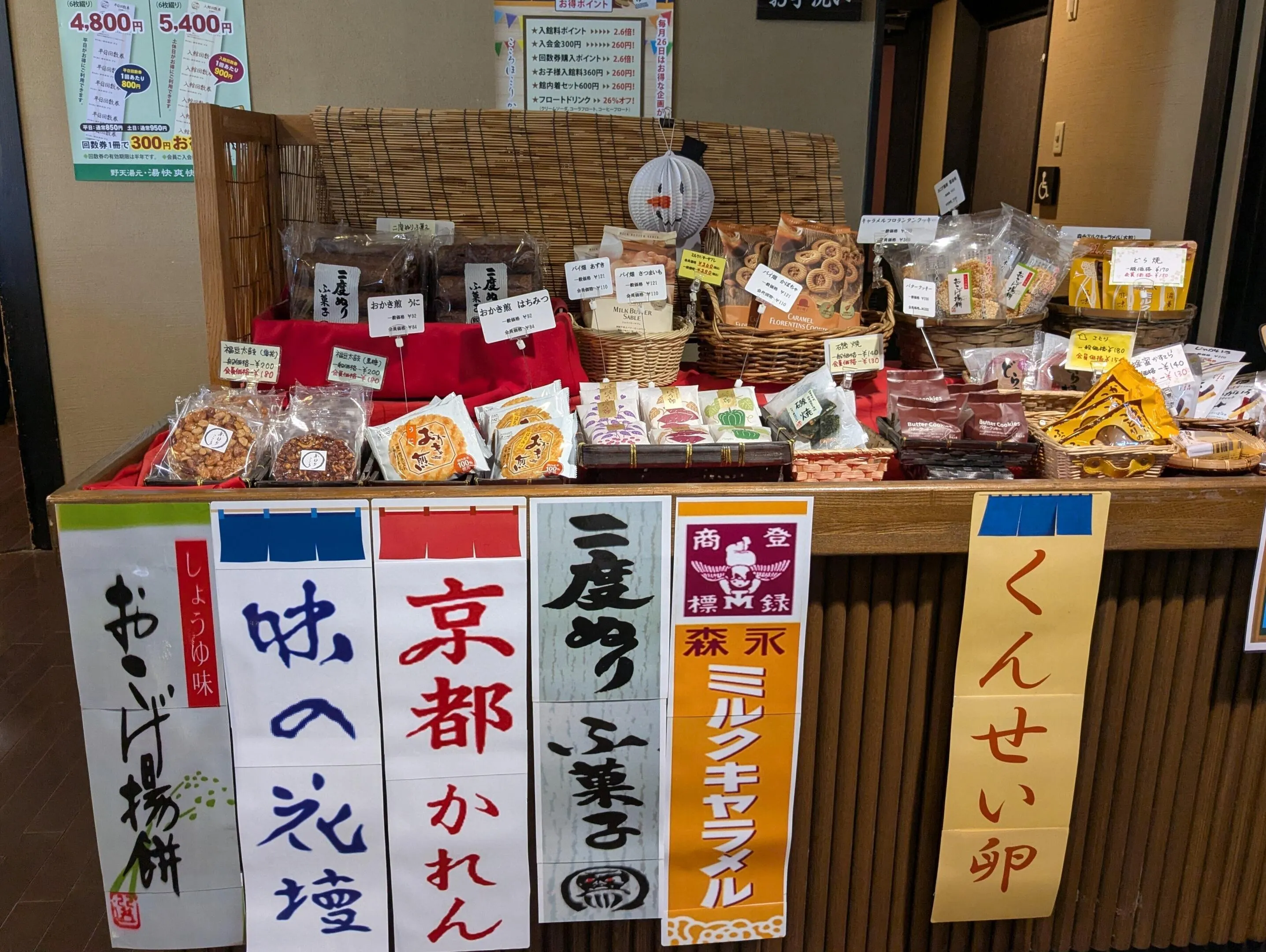 フロント前に設けられた売店には、駄菓子やスキンケア用品、サウナグッズなど幅広いアイテムが並んでいます。約1年前に保坂さんが赴任されて以降内容が充実し、売上げが大幅に増加したそうです。