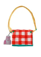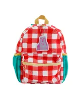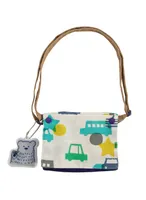 車のライトに反射するリフレクターが夜道のお子様を守り、背面メッシュが、汗っかきのキッズたちに嬉しいポイント。内側にお名前がかけるネーム欄、肩ひもがズレ落ちないチェストストラップ、ボトルが入るサイドポケット付き。モチーフのうさぎとくまがしっかり手をあげて「手をあげて横断歩道を渡りましょう!」と伝えています。