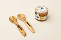 赤ちゃんから大人まで使える「オリーブのミニカトラリー」は、見た目の可愛さ、使いやすさはもちろん、一つひとつ異なるオリーブの木目が食卓に温かみを添えてくれます。オリーブの木はカビに強く、雑菌が繁殖しにくい素材。木が呼吸して収縮したり、経年変化でヒビが入ることもありますが、それもその木の持ち味として楽しみながら、長く使えます。