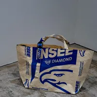 タイで流通するセメント袋の廃材は、耐荷重20kgの強度と抜群の耐水性。 さらに、日本の廃材にはない鮮やかな色や、ユニークなデザインが特徴的で、アップサイクルの素材として最適です。