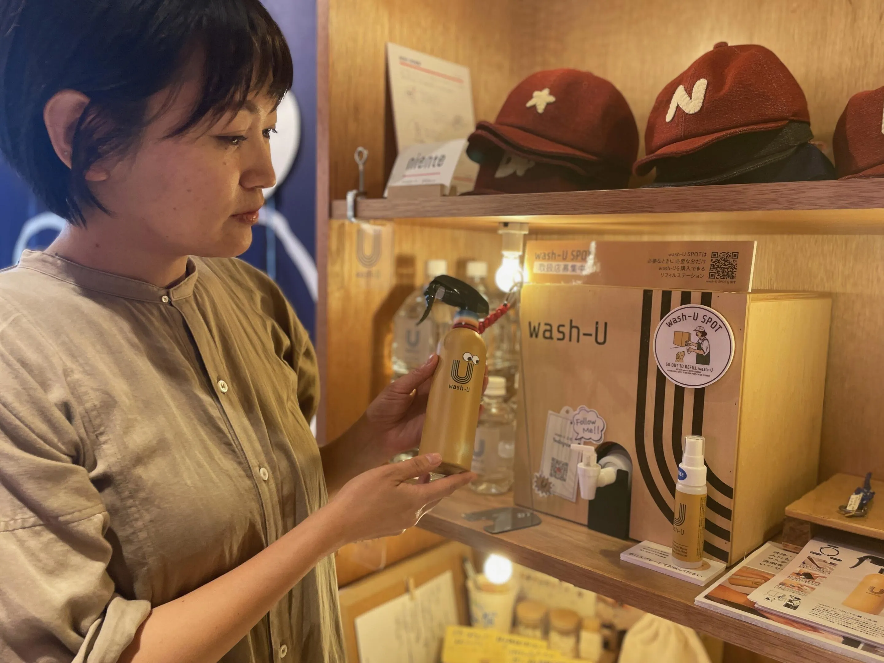 「wash-U(ウォッシュユー)」という、環境負荷のないクリーナーを作っている会社があるのですが、パフェのプロデュースをしてくれている京都の斗々屋さんが店舗清掃に使用されていたので、商店でも使おうと。そこで業務用を仕入れる流れで37棚商店街のことも、橋さんを通してお話しいただいたところ、想いに共感して、逆に出店くださることになったんです! 下北沢っぽいオリジナルのステッカーも作ってくださって、これを買えるのはみんな37棚商店街だけです。」