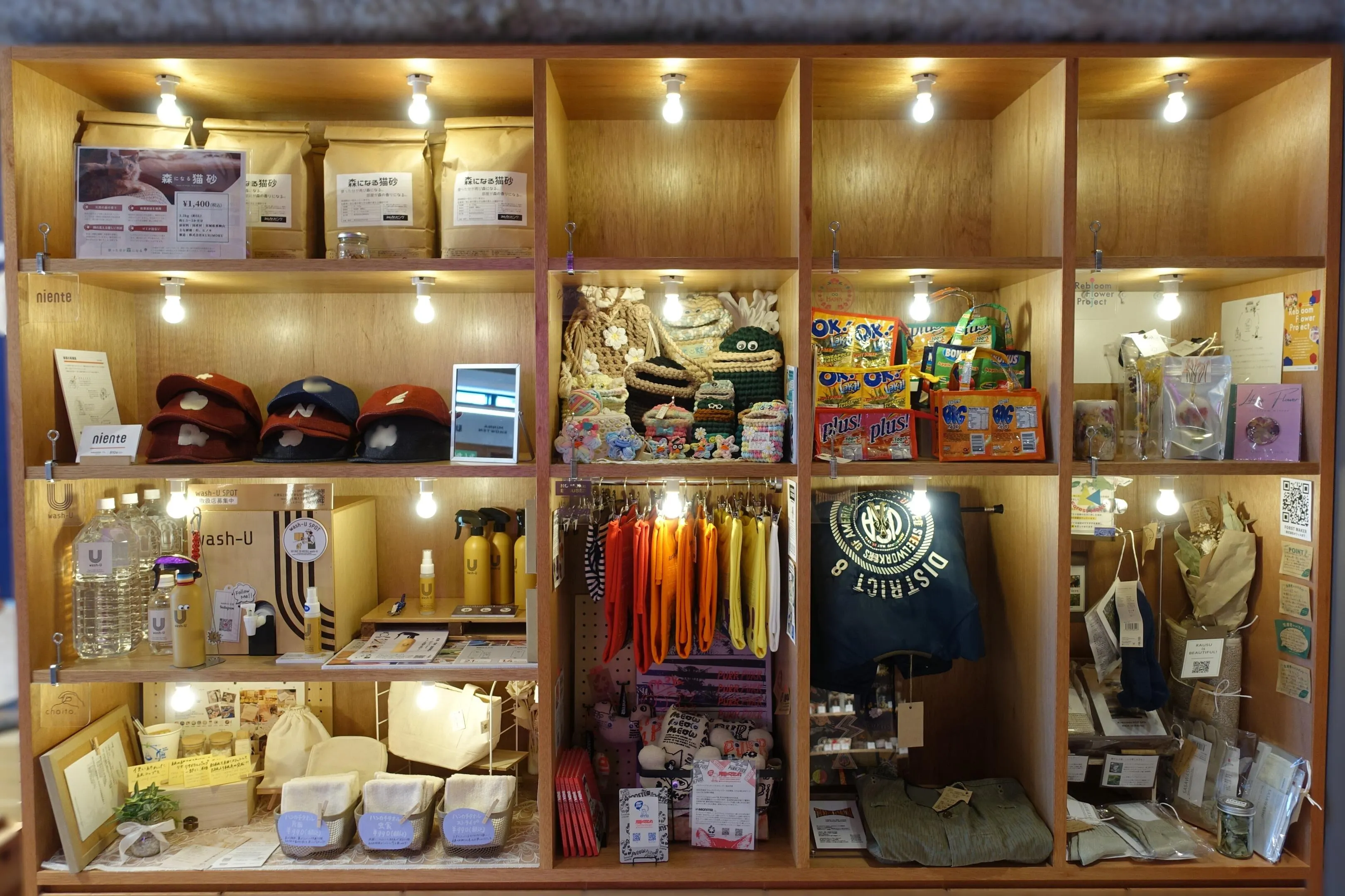 その他、ハンドメイド作品や絵本、パレスチナ雑貨の「架け箸」やプラスチックフリーの日用品を扱う「TwoTrees」など、グッズに出店されているブランドも見かけます。 「37棚商店街では、新しいものとの出会い、選択肢を提示したいと思っています。まず選択肢を知らないとなにも選びようがないじゃないですか。だから、選択肢を知ってもらう場所というのはすごく意識しました。」
