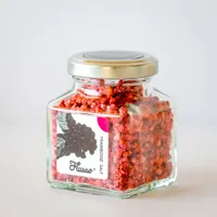 「フランボワーズソルト」は、ベリーのはなやかな酸味と芳醇な果実味に、あざやかな色合いが料理に高級なアクセントを与えます。お肉料理、カルパッチョ、スイーツのアクセントにも◎。