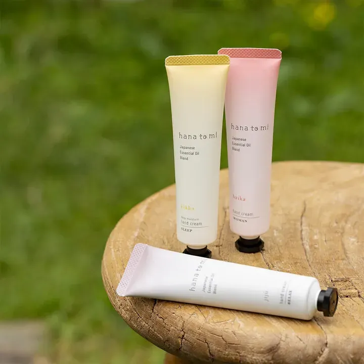”hana to mi ハンドクリーム”は、天然精油の香りに包まれるハンドクリーム。