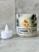 HAIAO(ハイアオ)は、廃棄予定の花々を丁寧にドライ加工し、一つひとつ手作業でキャンドルやアロマワックスバーに生まれ変わらせている、サステナブルなハンドメイドキャンドルブランドです。
