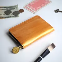 “ラウンドファスナー コンパクト財布”は、お札を2つ折りで収納できるコンパクトすぎないミニ財布。硬貨、カード収納もあり、誰でも使いやすいオールマイティーなお財布です。