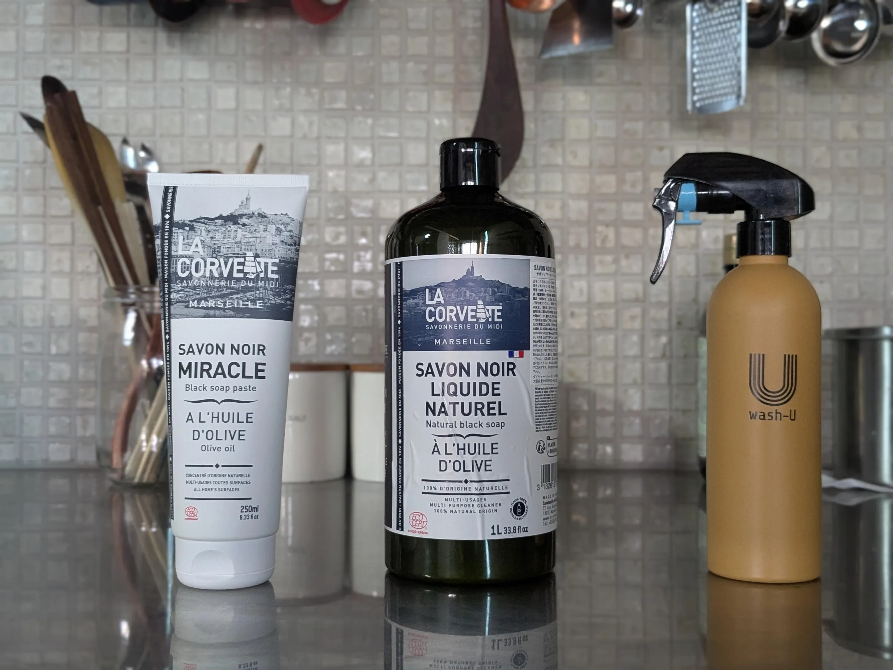 まずは、La Corvette(ラ・コルベット)から。黒石鹸(ブラックソープ)と呼ばれるフランスで古くから愛される住居用洗剤を2タイプ選びました。