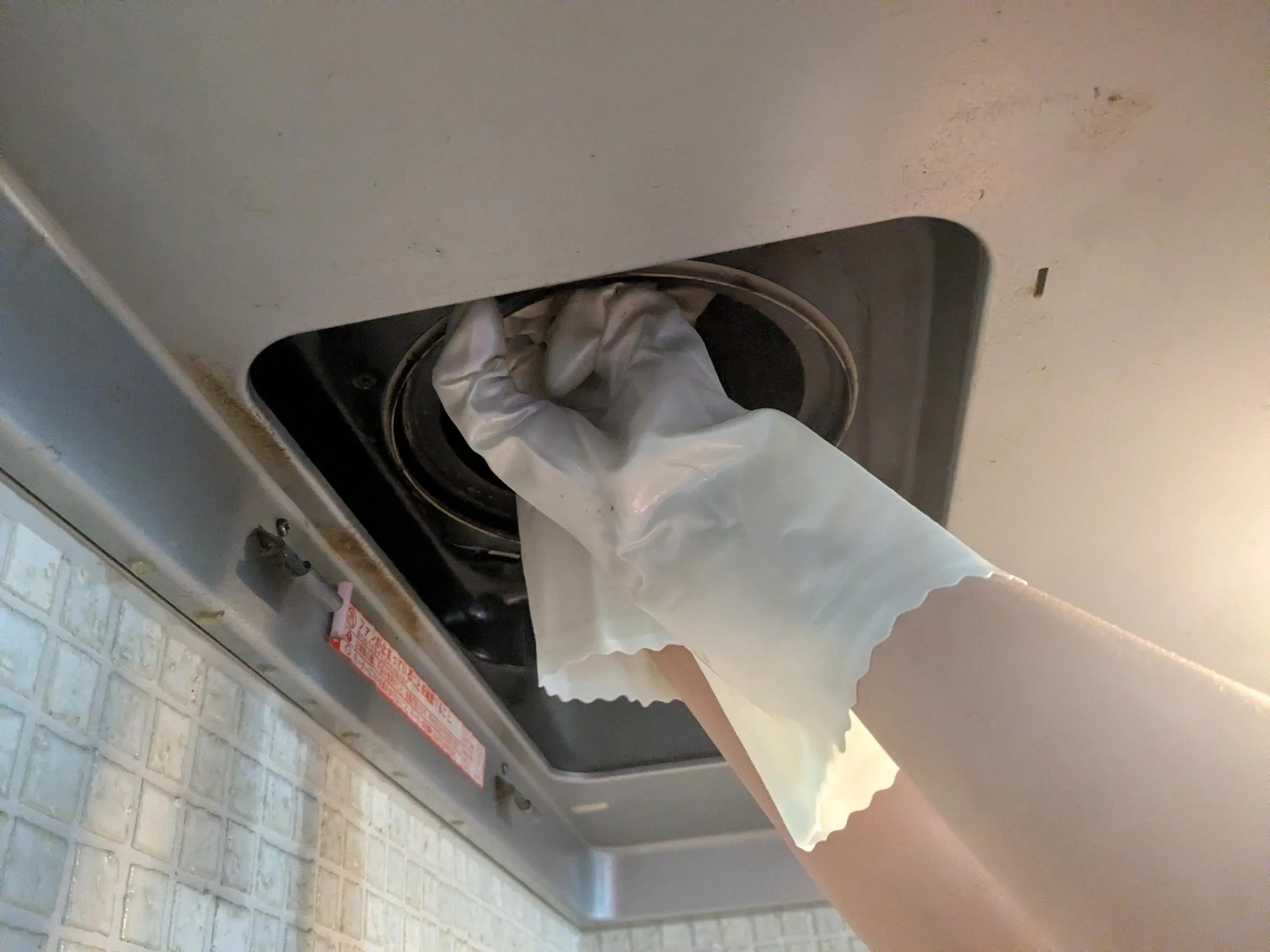 良く晴れた休日に、料理の度に気になっていた換気扇掃除に取り組むことにしました。