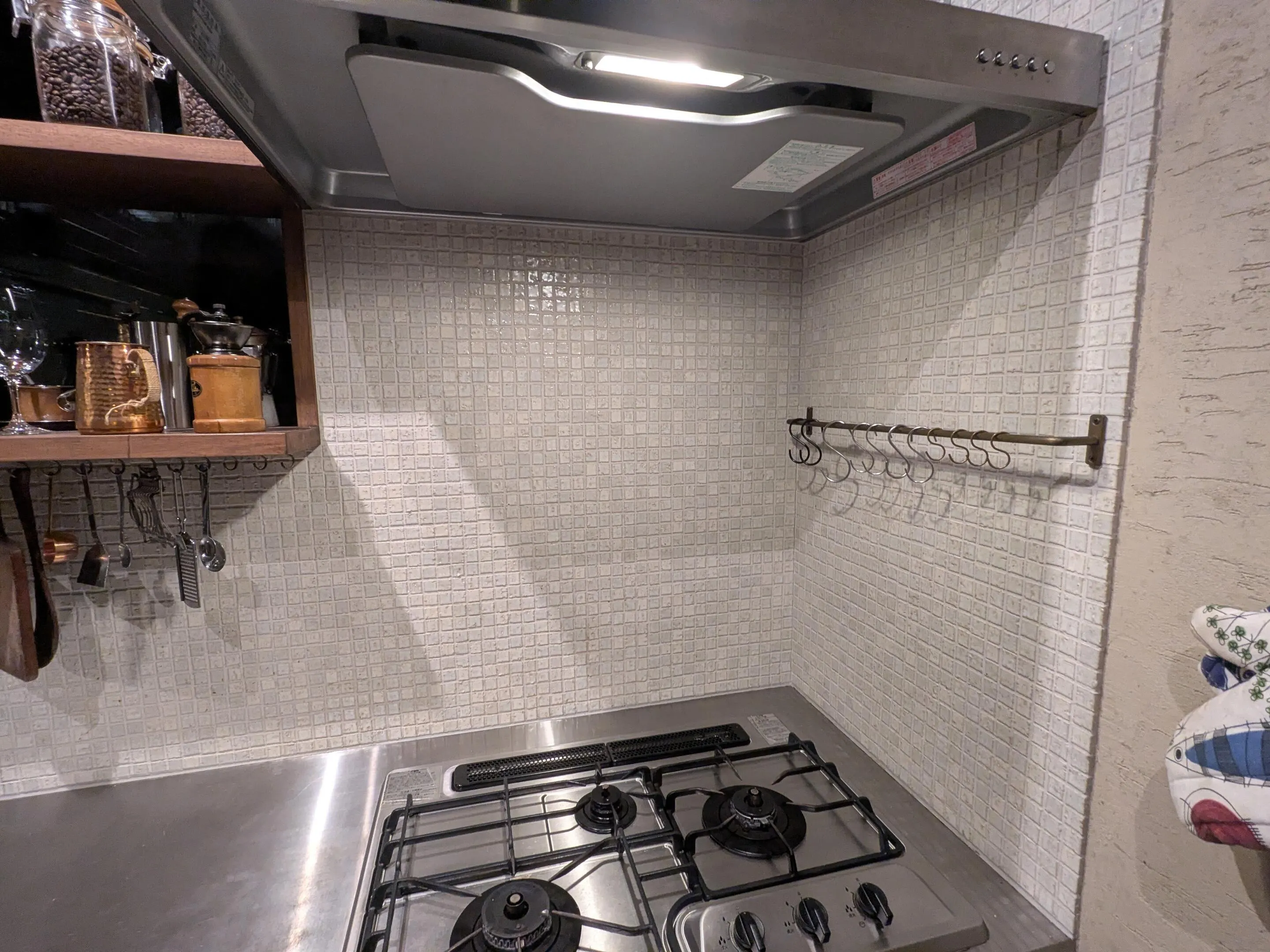 初めて換気扇の内部まで自分で掃除したキッチン。コンロもピカピカになりました!正直、しばらく使いたくありません!笑