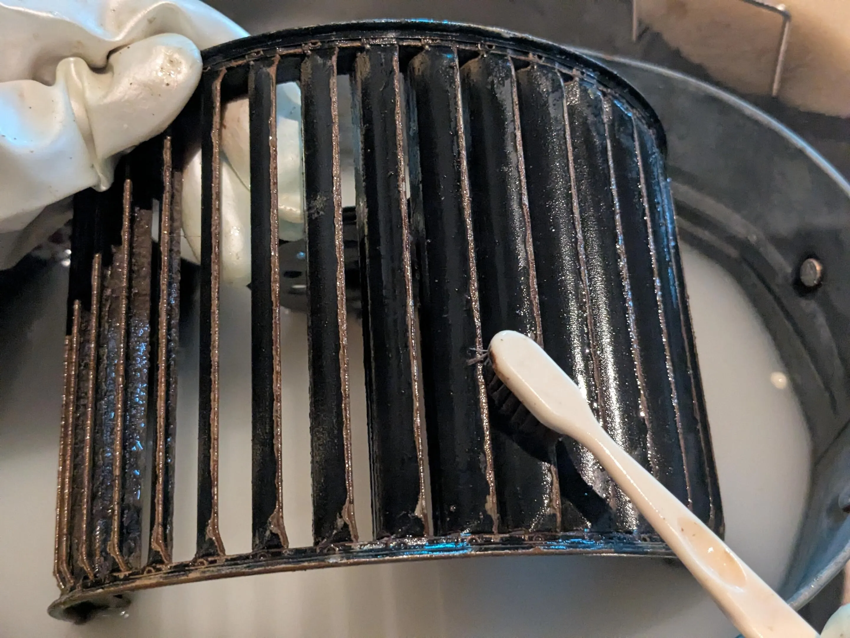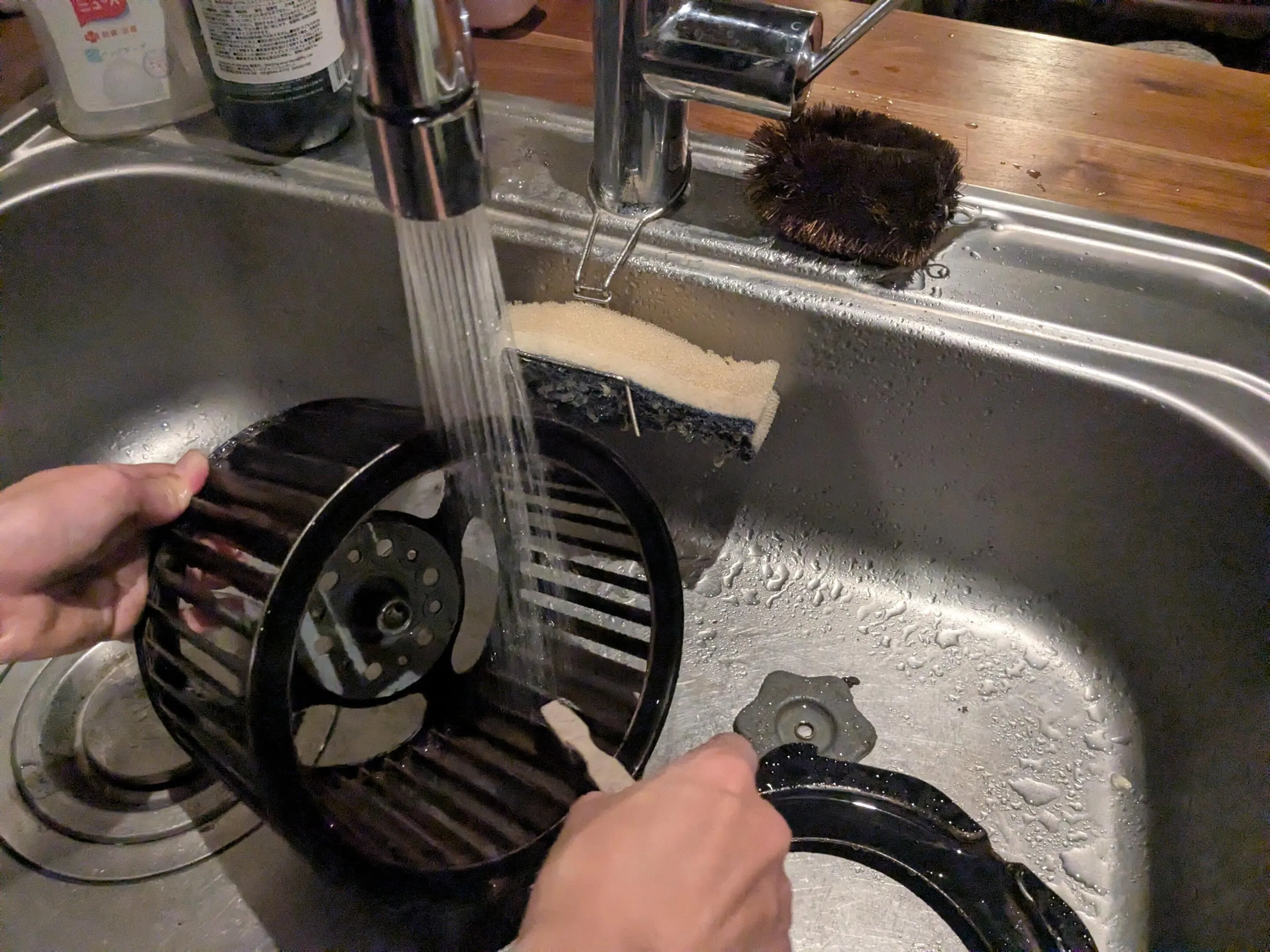 いつもフィルターを交換する際、中のファンは手で届く部分をふき取ることしかやらず、ファンを外すのは2年ぶりです(前回は業者さんにやってもらいました)
