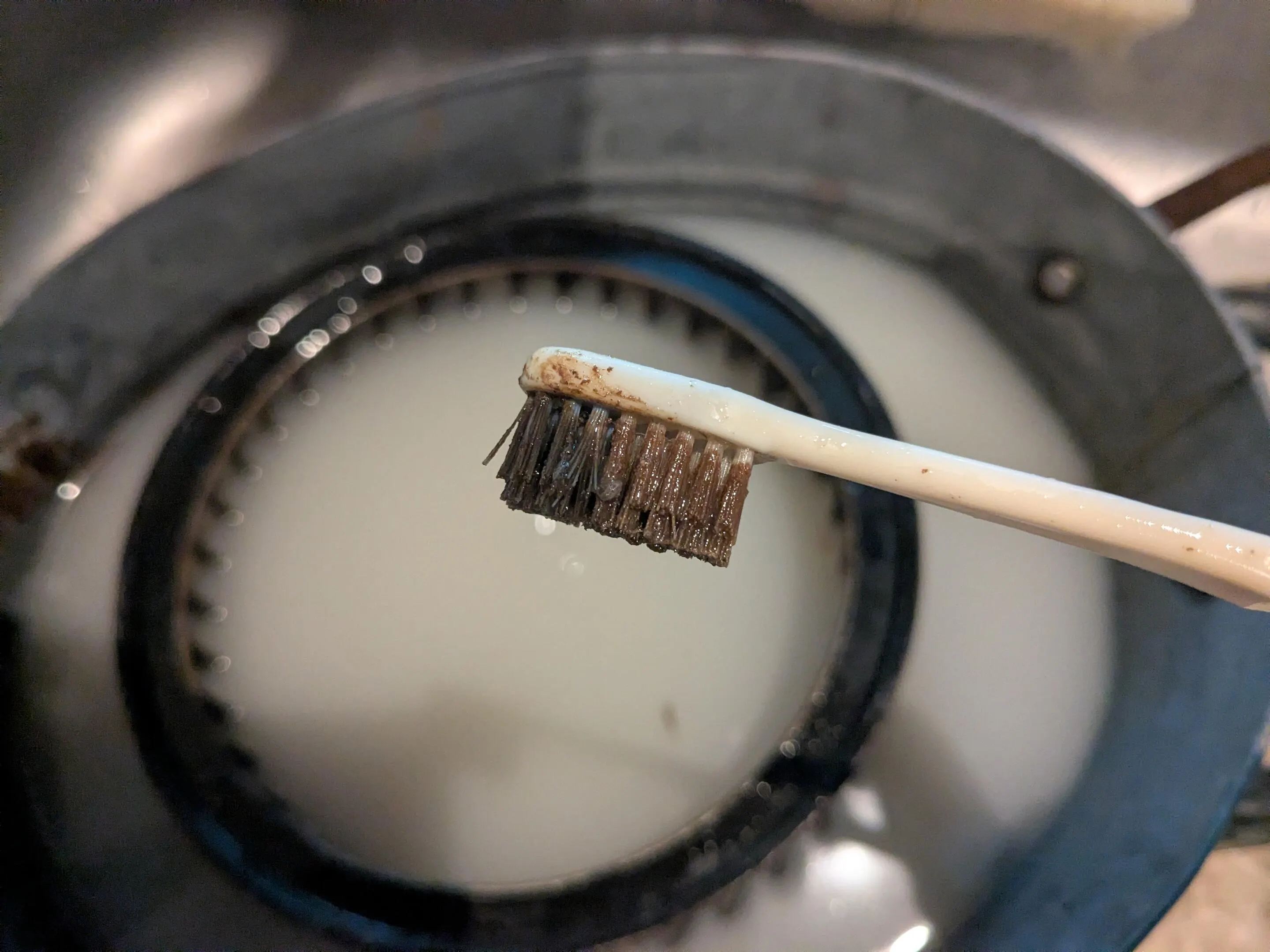 特に汚れが気になるところは、洗剤を付けながら歯ブラシでこすります。