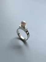 不動の1番人気は、「かくれんぼ」という名前のとおり、アコヤパールがリングの内側にセッティングされ、見え隠れするリング。着け心地が軽く、手持ちのリングとの重ね着けもしやすいアイテムとなっています。