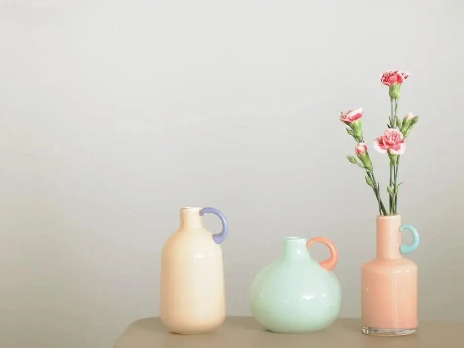 取っ手とボトル部分の色が違ったツートンカラーでお花を入れて可愛いのはもちろん、ただ置いておくだけでも可愛いアイテムなので、家の中の様々な場所に置きたくなります。