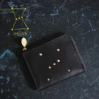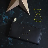 星の抜き型の奥にゴールドがキラリ、オリオン座がデザインされたHELIのL字ファスナー長財布は、シンプルながら個性光るデザインが目を引きます。