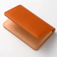 素材には国産の姫路レザーを使用。革の特性に合わせた薄くコンパクトで緻密なサイズ設計は、革本来の柔らかさと革表面の美しさを利用し、無駄な装飾をなくすことで実現しています。名刺入れの内装にもすべて本革を使用。ポケットの内部分、裏部分にも革を張り合わせ、開いても美しい見た目をキープしています。