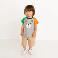 お尻にどどーんとクマの顔と、可愛らしいお耳が飛び出したボトムスは、ハイハイや歩きはじめの子ども達の可愛さに負けないアイテムです。