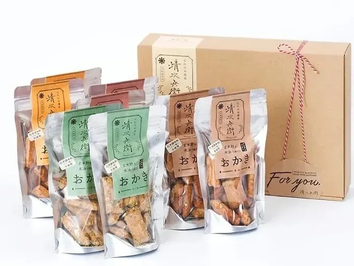千葉県の老舗米農家が展開する「五代目森山清次兵衛」。玄米餅を米油で揚げたヘルシーなおかきは、美容意識の高い女優さんの手土産として特集されたことを受け、若い女性や子育て世代からも注目されています。グルテンフリー・ビーガン対応で、小麦不使用の有機たまり醤油を使用。ヘルシーなお菓子は幅広い方に喜ばれそうです。