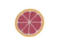 置いておくだけで可愛いトロピカルフルーツの「ビーズコースター」。透け感のある涼し気なカラービーズを使い、インドの職人さんが一点一点手作りしています。飲み物を置いたときに水滴でテーブルが濡れないようにと、裏地の気遣いも嬉しいポイント。元気がもらえそうなビタミンカラーでお部屋や食卓を華やかに演出します。