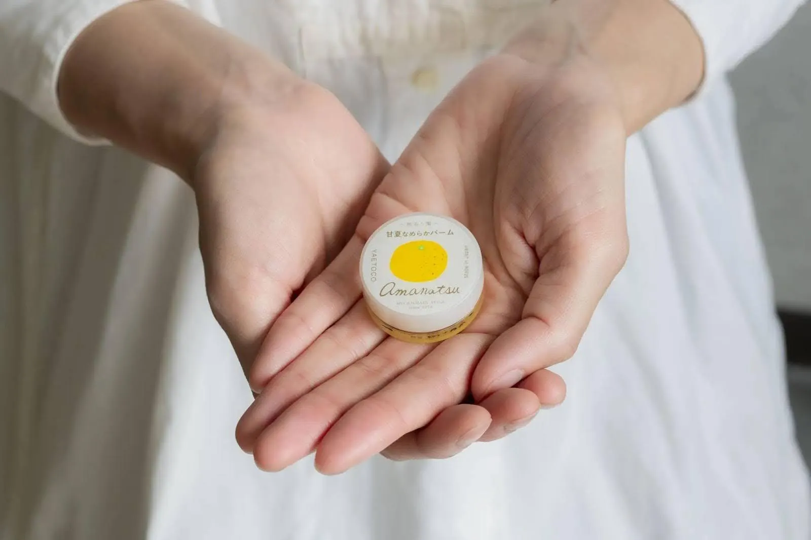 「甘夏なめらかバーム」は、甘夏の果皮から水蒸気蒸留法によって抽出した精油と、みかんの花々から採ったハチミツを使用して製造したバームです。しっかり保湿しながらも、付け心地はさらっとしていてベタつきません。唇のほか、手指のささくれやかかとのケアなど全身に使えます。