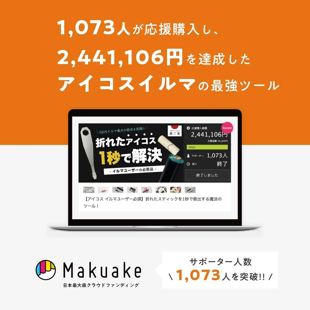 は、日本最大級のクラウドファンディングMakuakeにて、達成率4882%、サポーター1073人から支持されたプロジェクトです。