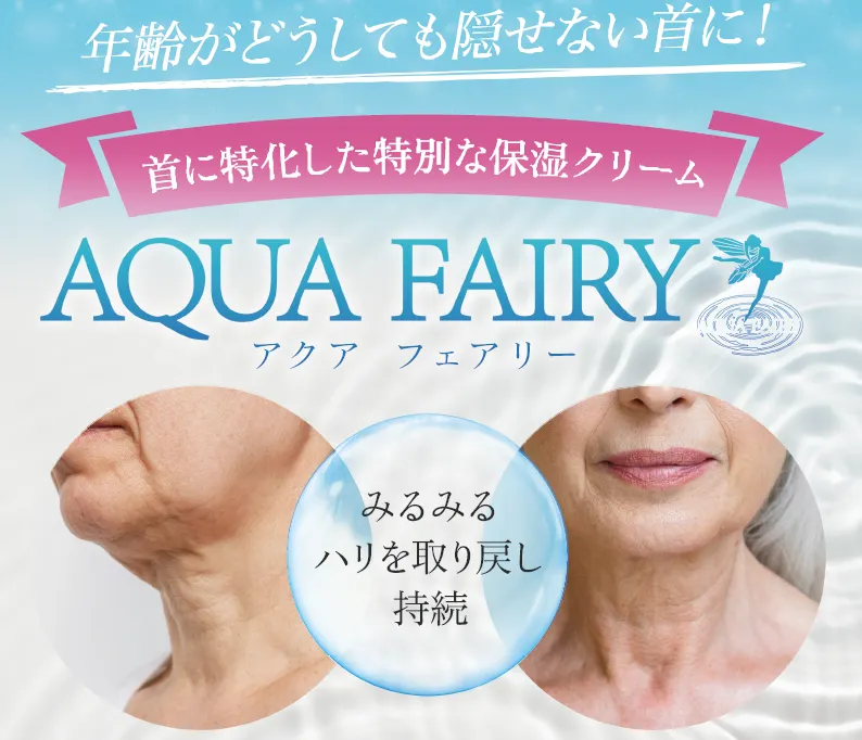 [アクアフェアリー』は首に特化した特別な保湿クリームです。 年齢が・・・どうしても隠せない首に! みるみるハリ・キメを取り戻しあきらめていた首がみちがえる。
