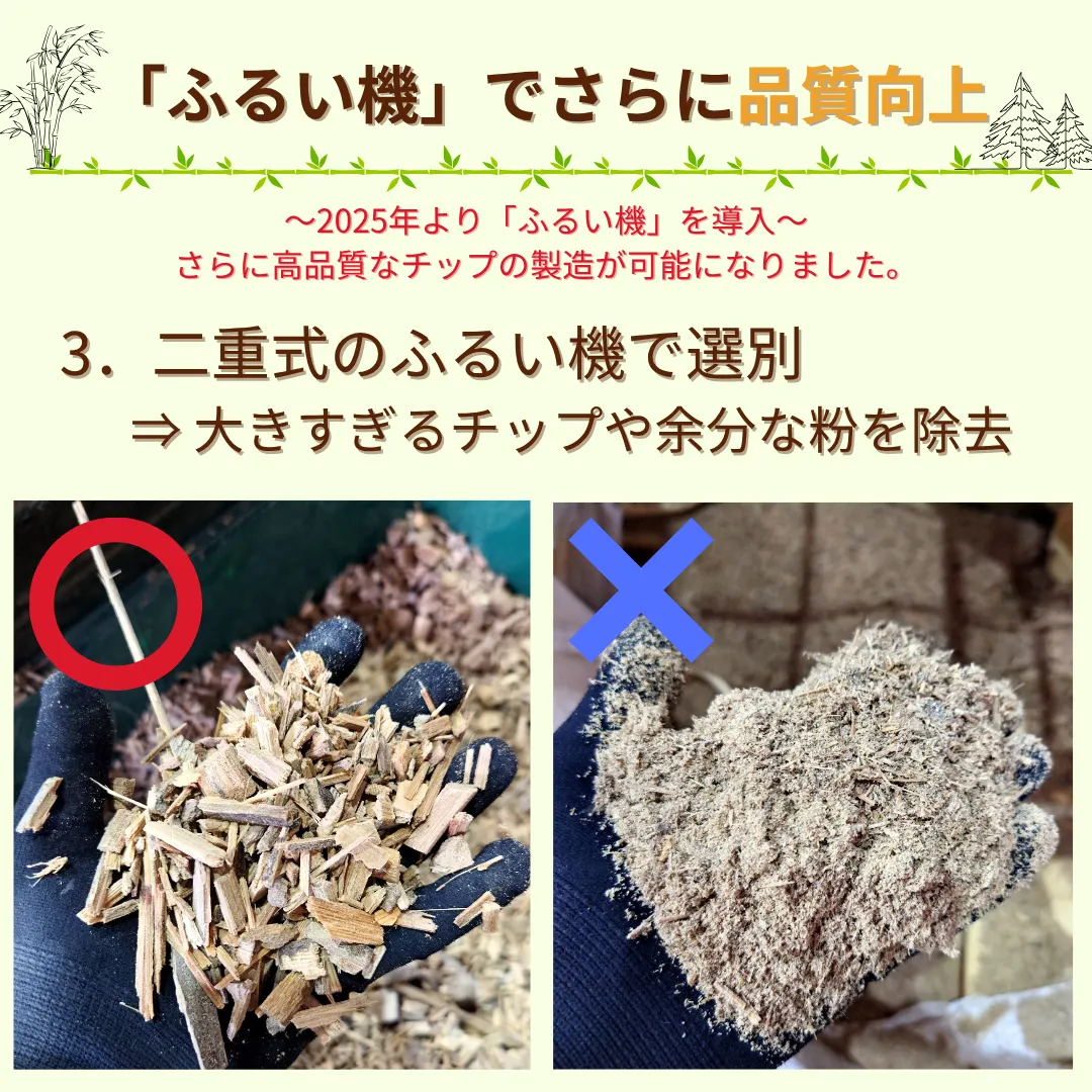 竹チップ_森林整備で伐採された「竹」をチップにしました。