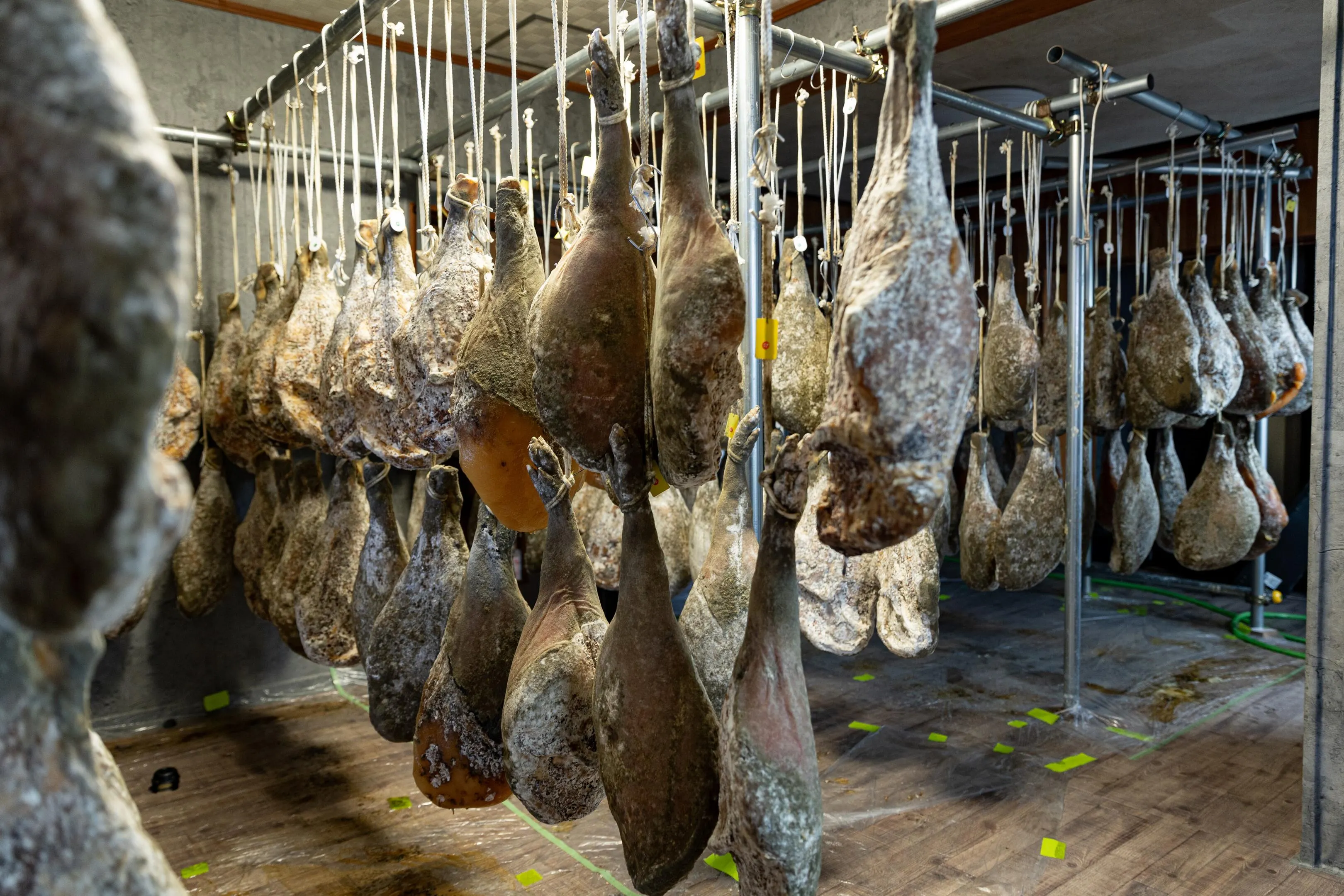スペインのハモンイベリコのボデガでは、生ハムにその土地独自のカビがまとわりついており、それが産地ごとの風味の違いに寄与しています。