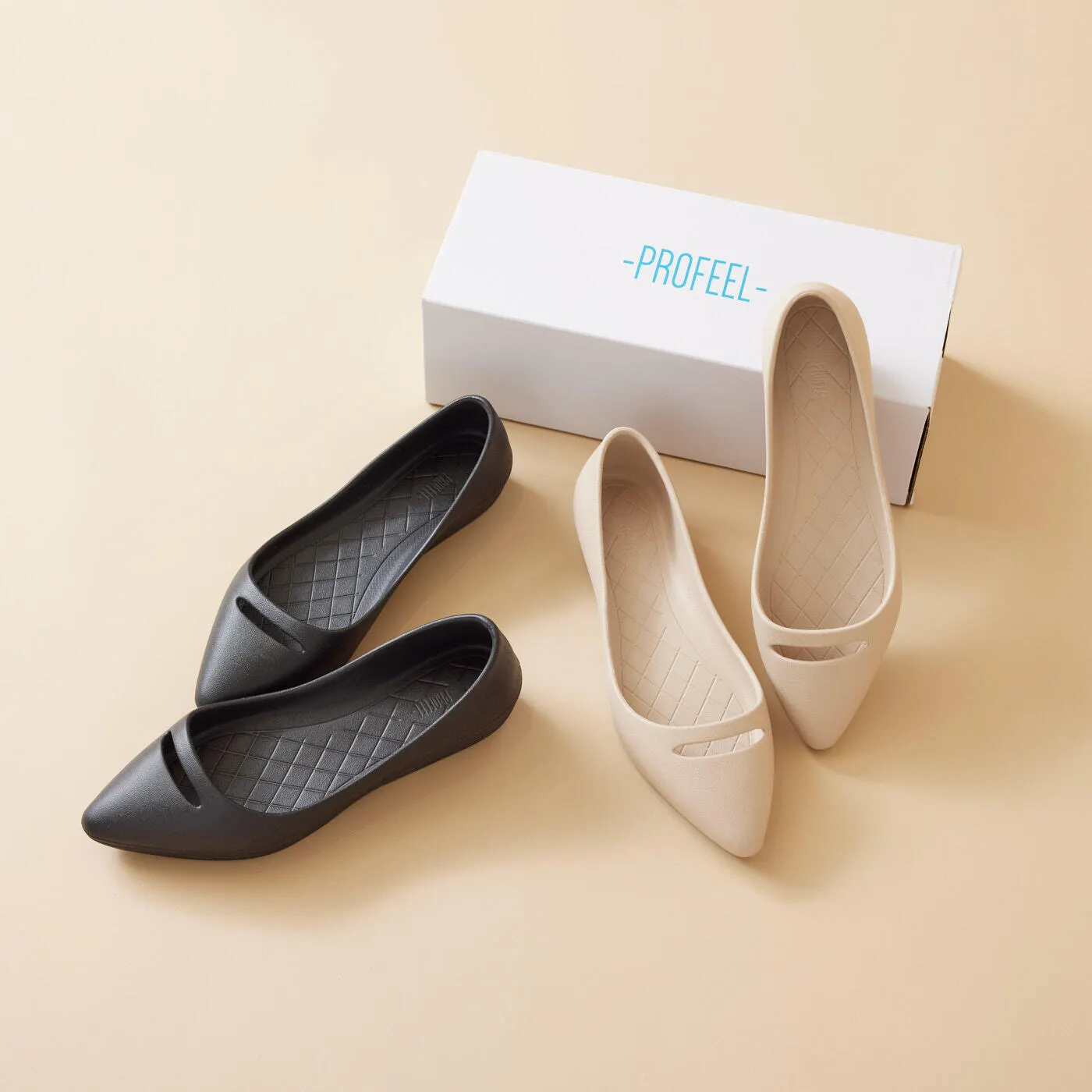 PROFEELは、快適さとスタイルを兼ね備えたパンプスを提供することで、女性たちが自信を持って自分らしく輝けるよう支援します。私たちの製品は、革新的な一体型モールドを使用し、快適性とデザイン性の両面で高いパフォーマンスを発揮します。