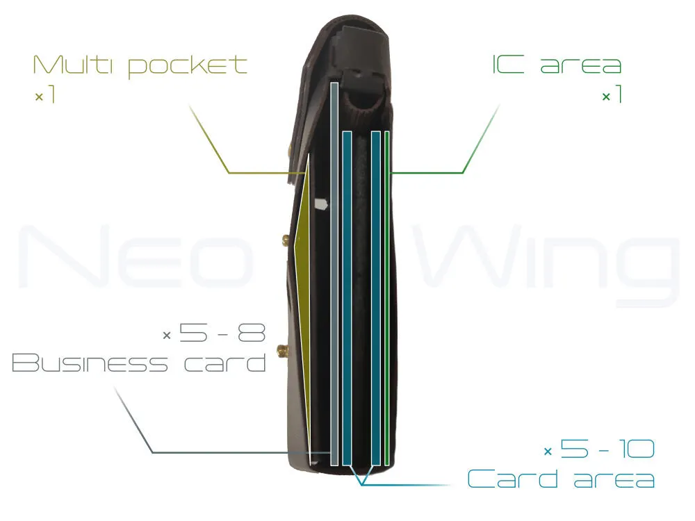 名刺が入るスペースもある2つのカードポケットに鍵も収納可能なマルチポケット、独立したコインポケットと巻き付けて収納する紙幣スペースがあります。コンパクト財布市場でトップクラスの収納力を実現するため、あらゆる工夫とギミック、加工技術をフルに導入したフラッグシップ商品になります。