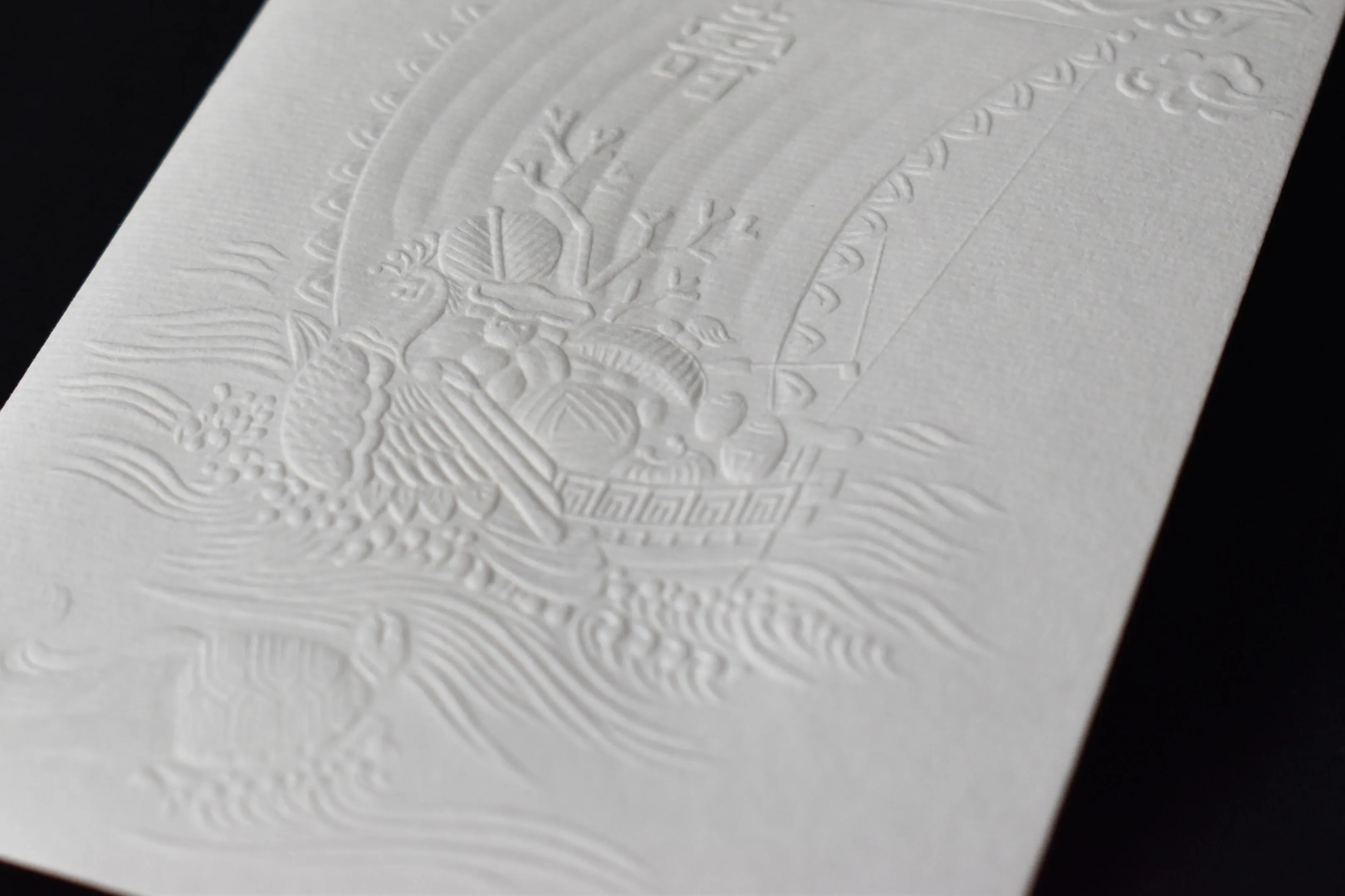 エンボス加工には当店で創業当時から使われている、今では手に入れることのできない大変貴重な版を使用しました。