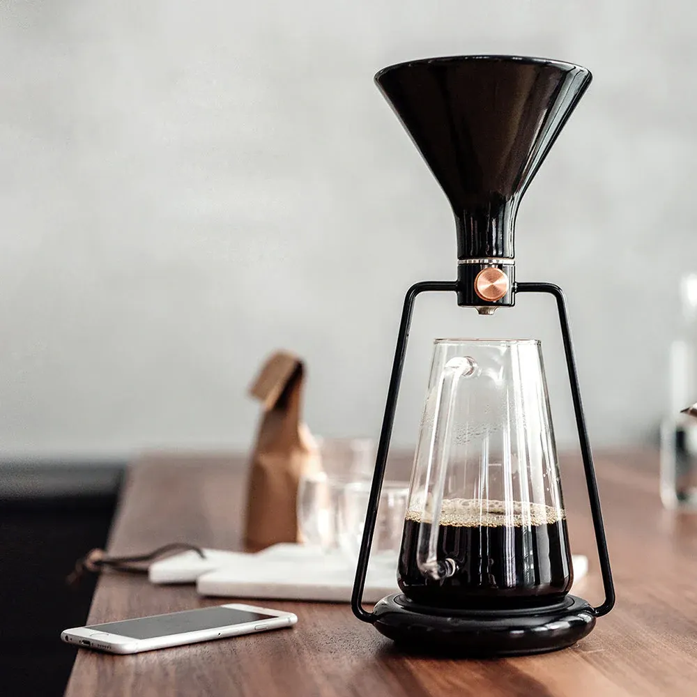 プアオーバー、フレンチプレス(浸漬法)、コールドブリューの3種類の抽出方法に加えて、アプリ連動の内蔵スケールが豆や湯量、抽出時間までエスコートして最高のハンドメイドを再現するスマートコーヒーメーカー。グッドデザイン賞をはじめ、数々のデザイン賞を受賞。シンプルで洗練されたデザインだから、インテリアと共にディスプレイすることができます。