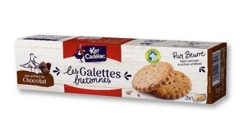 フランスの自社工場で伝統レシピを現代的に昇華。ピュアバター18%の芳醇な香りと、チョコチップが奏でる極上のサクサク食感