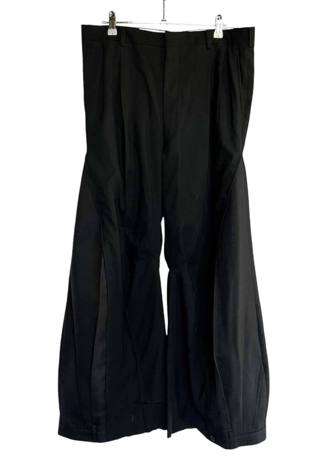 異なる2枚のスラックスパンツを大胆にドッキングし、フレアシルエットを実現した個性的なパンツです。立体感のあるシルエットが、足元にボリュームをプラスし、動きに合わせて印象が変わります。ミニマルなデザインでありながら、存在感抜群の一着。ユニークなスタイルを楽しみたい方におすすめです。