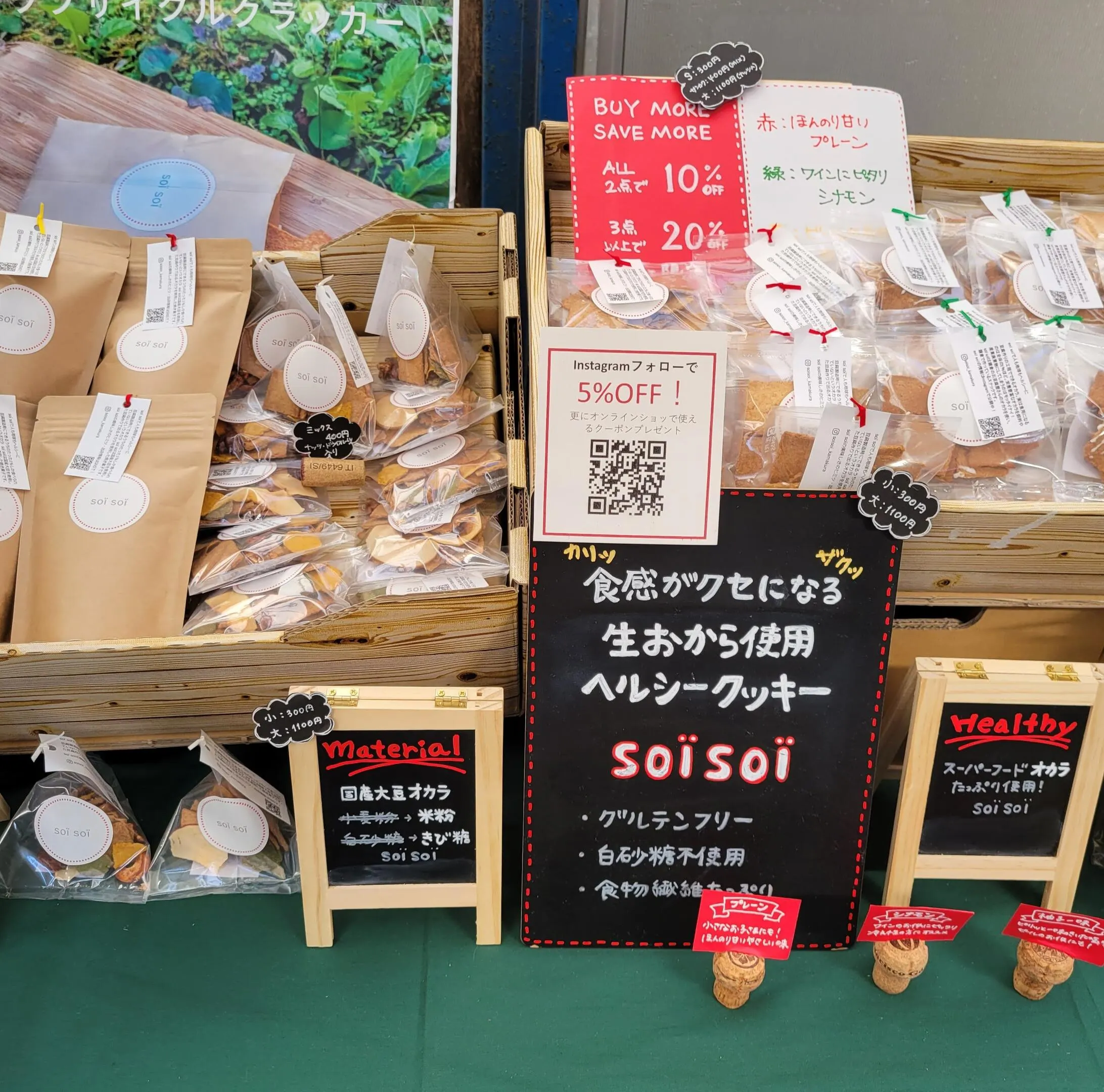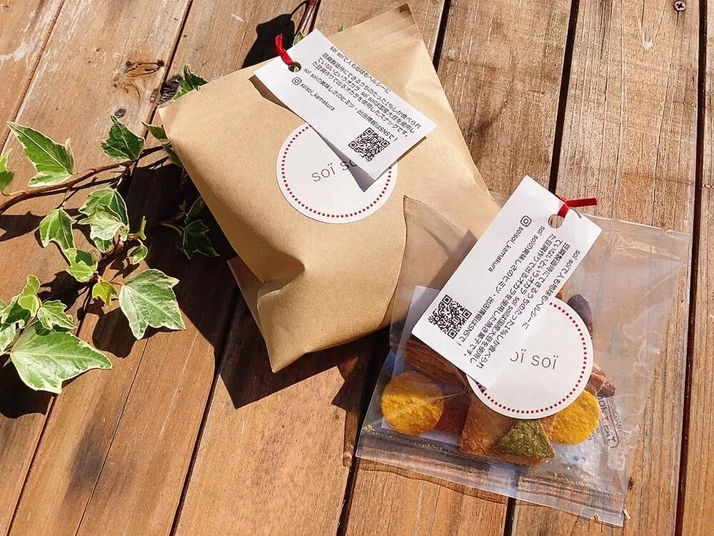 soï soïは、国内外の人にもっとオカラを積極的にとってもらえるようにという思いで考えたお菓子です。マルシェなどで販売していると、若い方のなかには「オカラって何でできているんだっけ?」と知らない人もいます。プラントベースのミルクが注目を集め始めているので、豆乳を搾ったあとに残る大豆ですよ、と伝えると栄養価が豊富で、ヘルシーな食べ物だと想像していただけるようです。