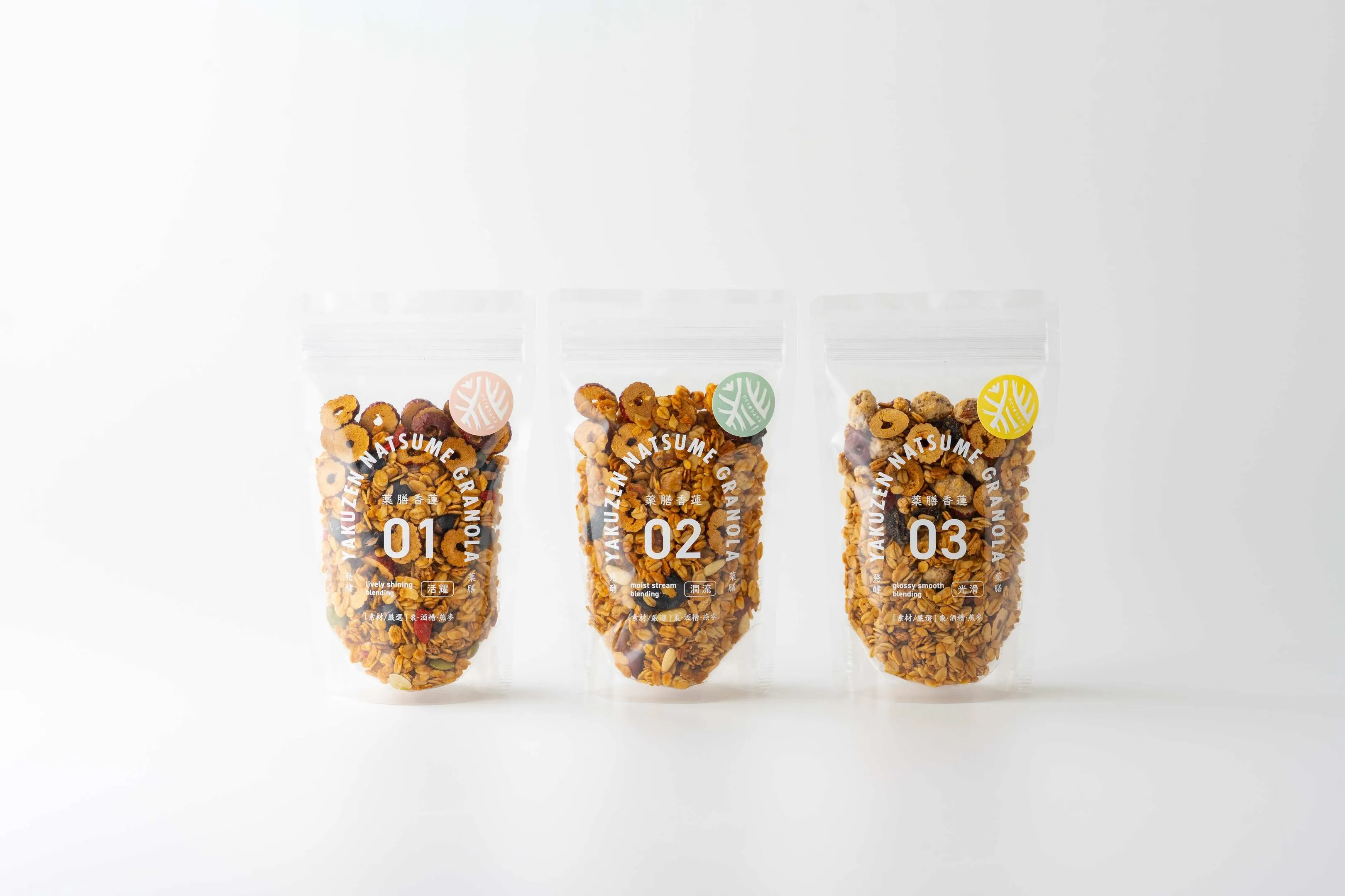 忙しい女性が続けやすいように、簡単に!手軽にをコンセプトに。薬膳茶はティーパック、スープはレトルトパウチ、グラノーラはそのままでも良いお味になっています。