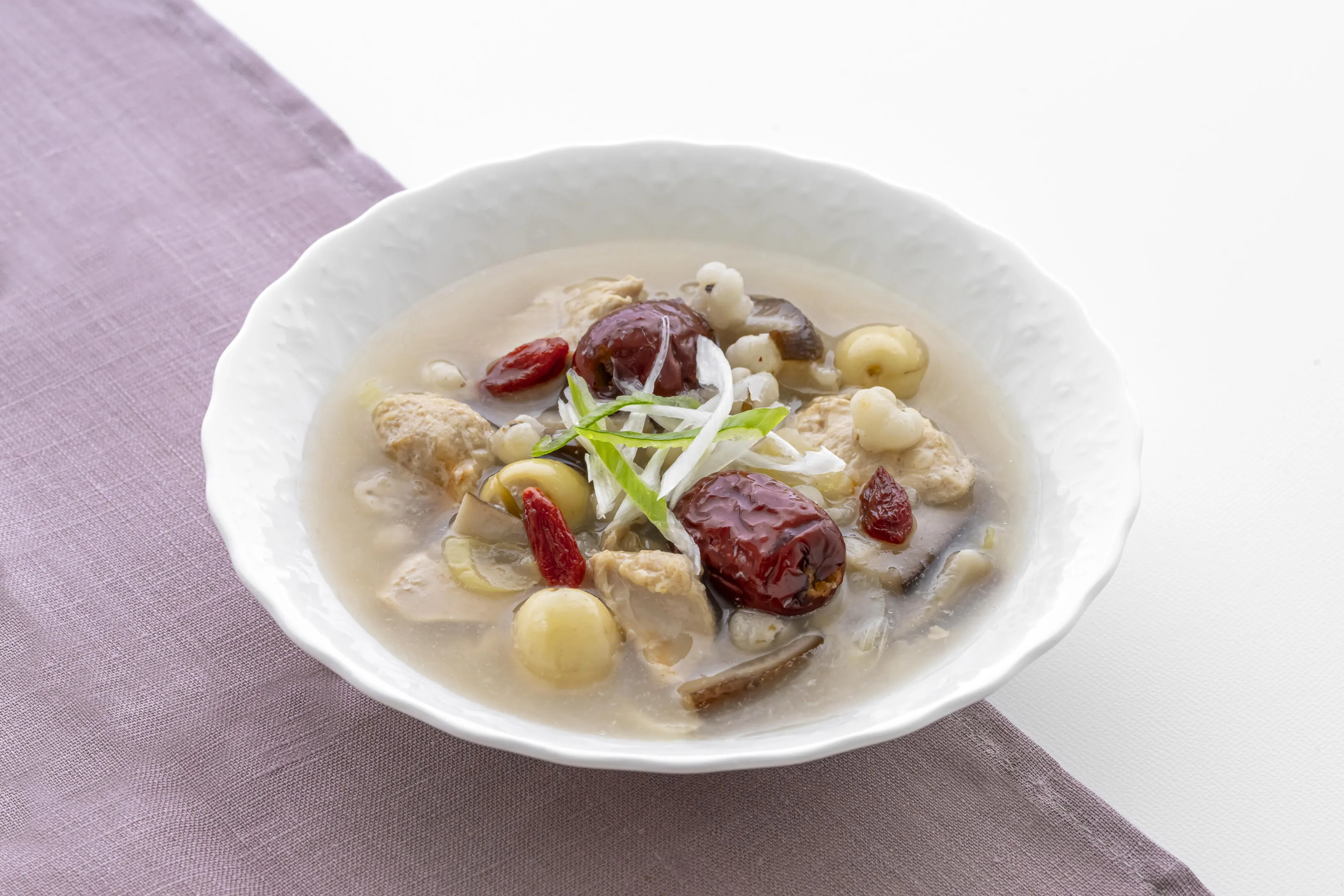 を使用しています。参鶏湯の滋養強壮や免疫力アップをコンセプトに、疲れた体に染み渡る優しいお味です。レトルト加工なので、温めるだけで簡単に食べられて、