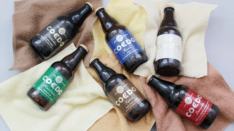 クラフトビール工場の「COEDO」とコラボレートしたビール染めのミニハンカチ。