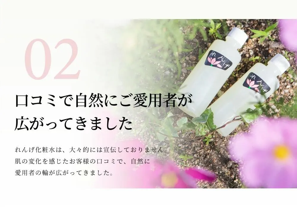 創業当時から販売商品はれんげ化粧水のみ。 スキンケアはれんげ化粧水1本で完結し、他のものは必要ないため 今後もその他スキンケア商品の販売はいたしません。