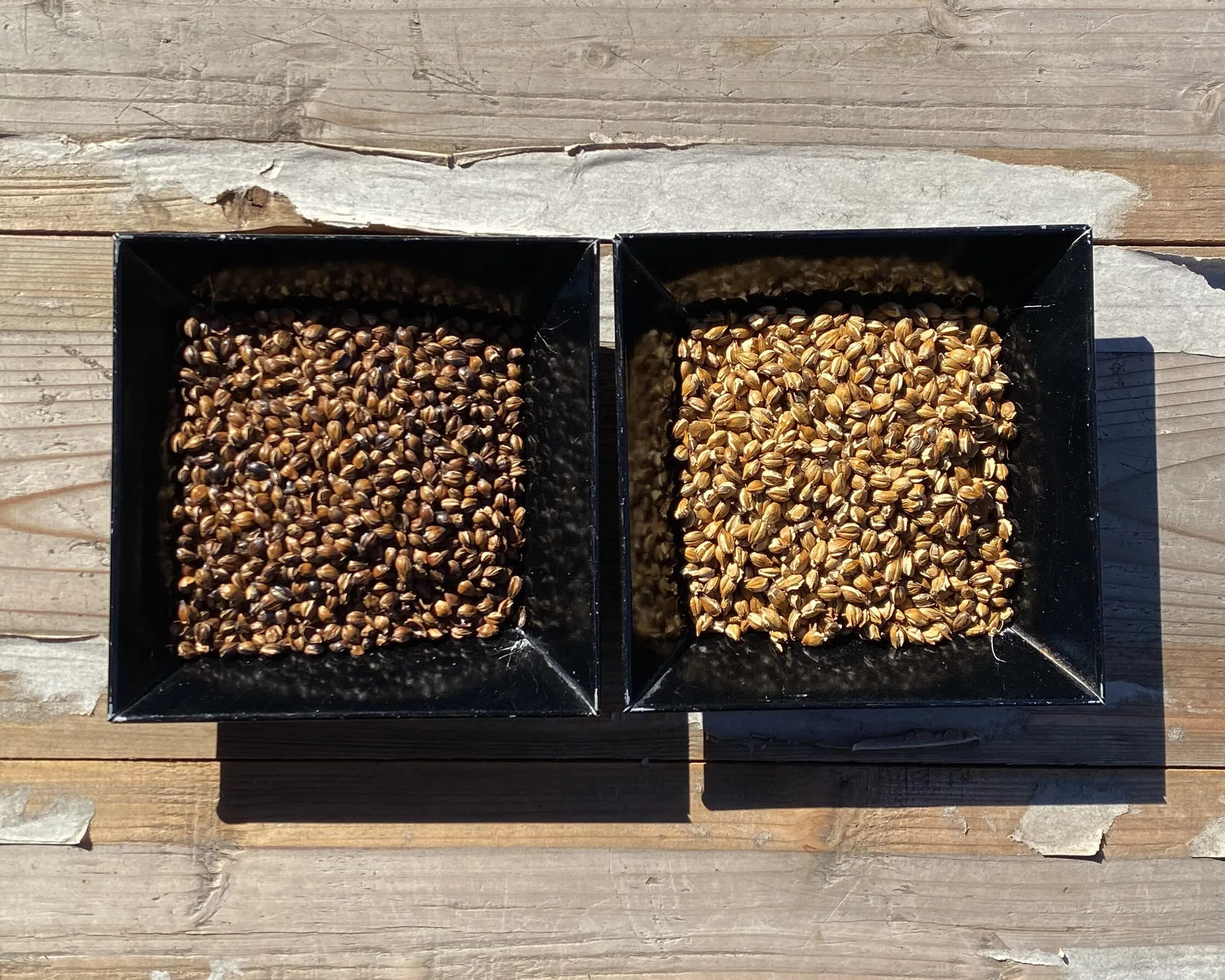 全国で3基しか現存しない稀少なレンガ造りの焙煎機で炒り上げた絶品自家焙煎麦茶は2種類あります。