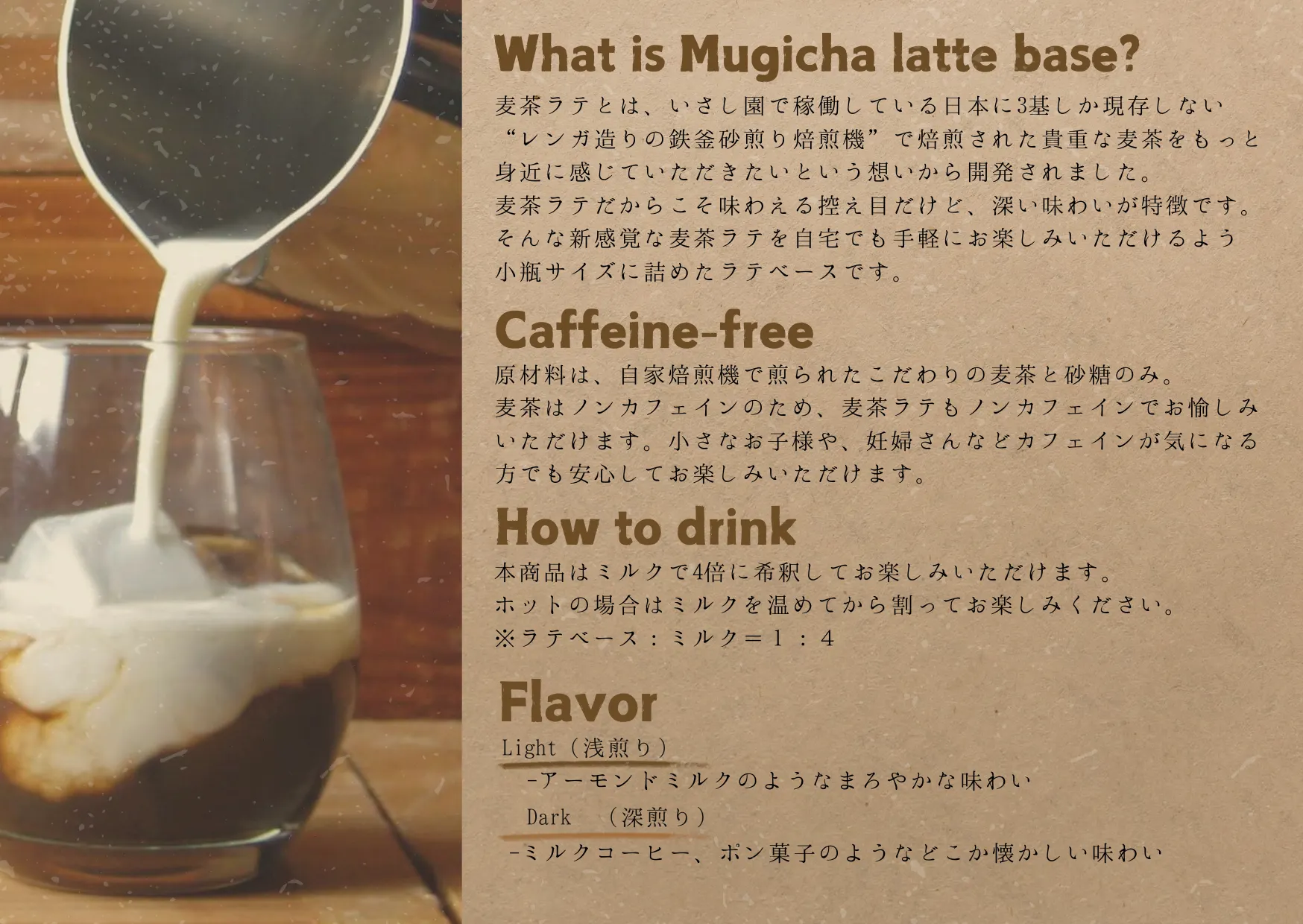 井指園の自家焙煎麦茶を使用した、”世界初”の麦茶ラテベースです。